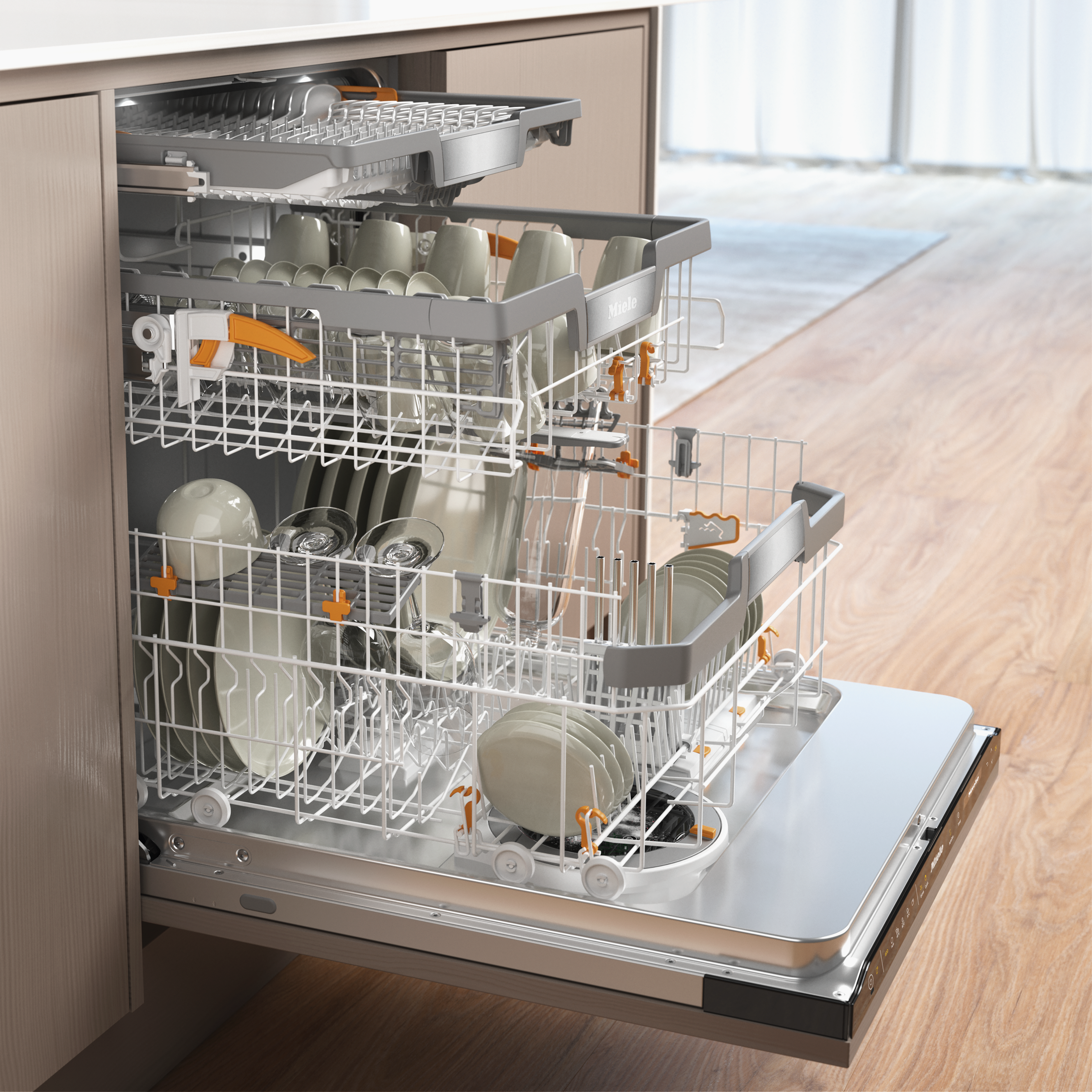 Встраиваемые посудомоечные машины Miele легко устанавливаются на эргономичной высоте. Благодаря технологии FrontFit компания Miele предлагает специальные модели, которые сводят к минимуму зазор до основания или прилегающей передней части. Это создает оптимальный рисунок соединения. Благодаря интеллектуальному механизму скольжения работа становится особенно комфортной.