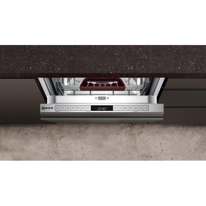 Современная узкая встраиваемая посудомоечная машина Neff S857ZMX09E сочетает в себе инновационные технологии, продуманный дизайн и высокую функциональность. Модель выполнена в стильном корпусе из нержавеющей стали и предназначена для полного встраивания в кухонную мебель. Габариты устройства (81.5 × 44.8 × 55 см) позволяют удобно разместить его даже в компактном пространстве.