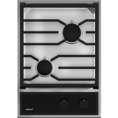Температура регулируется с помощью фирменных поворотных переключателей Wolf, что обеспечивает точный контроль процесса. Специальные чугунные решётки аккумулируют и равномерно передают тепло, формируя характерные следы прожарки на продуктах.