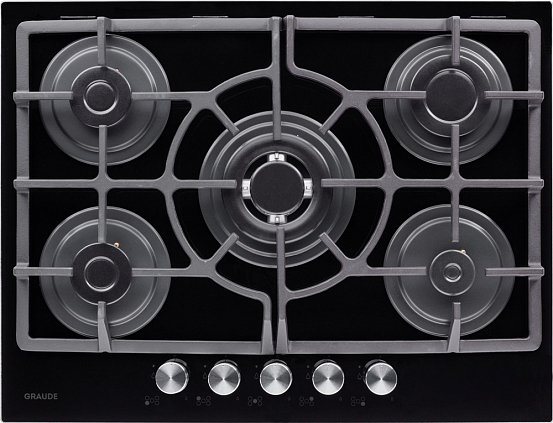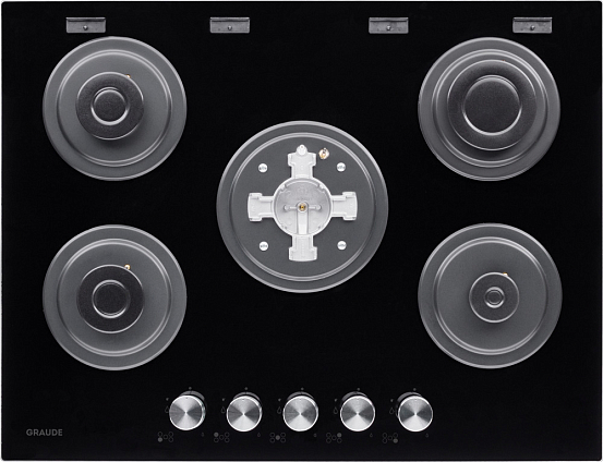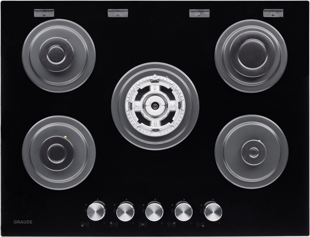 Компактная газовая панель шириной 70 см с 5 конфорками, включая WOK. Поворотные переключатели обеспечивают удобное управление. Система «Газ контроль» и автоматический электроподжиг гарантируют безопасность.