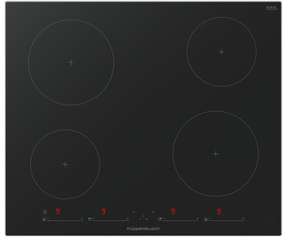 - 2 варочные зоны Ø 150 мм 1200 Вт (1500 Вт*)