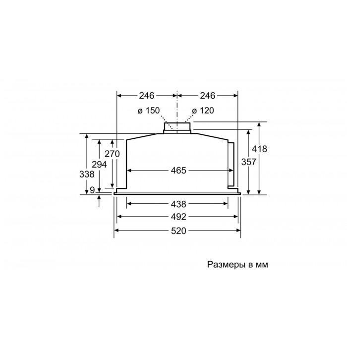 - Размеры (отвод воздуха):