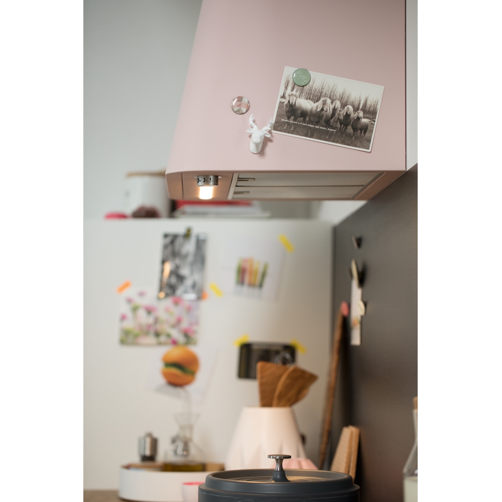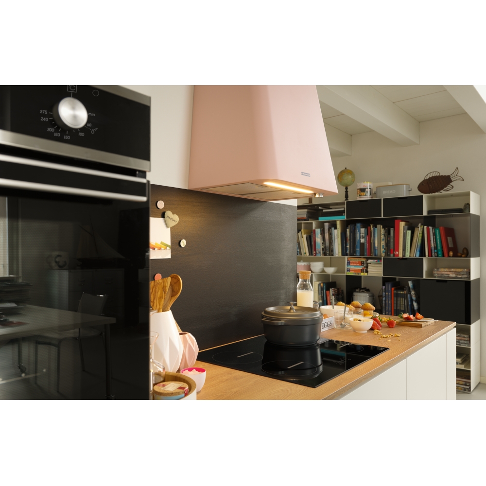 Cтильная, излучающая уют кухонная вытяжка Smart Deco. Доступна в семи ультрасовременных цветах - от матового синего до экстравагантного зеленого, розового или горчичного желтого - каждый из которых может легко сочетаться с другими цветами кухонных элементов. Благодаря полуматовой отделке текстура выглядит прозрачной и мягкой при естественном освещении.