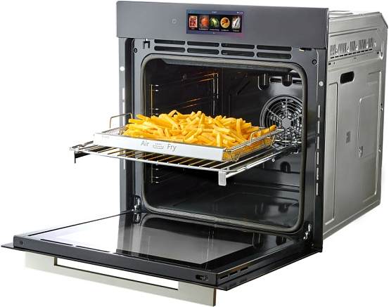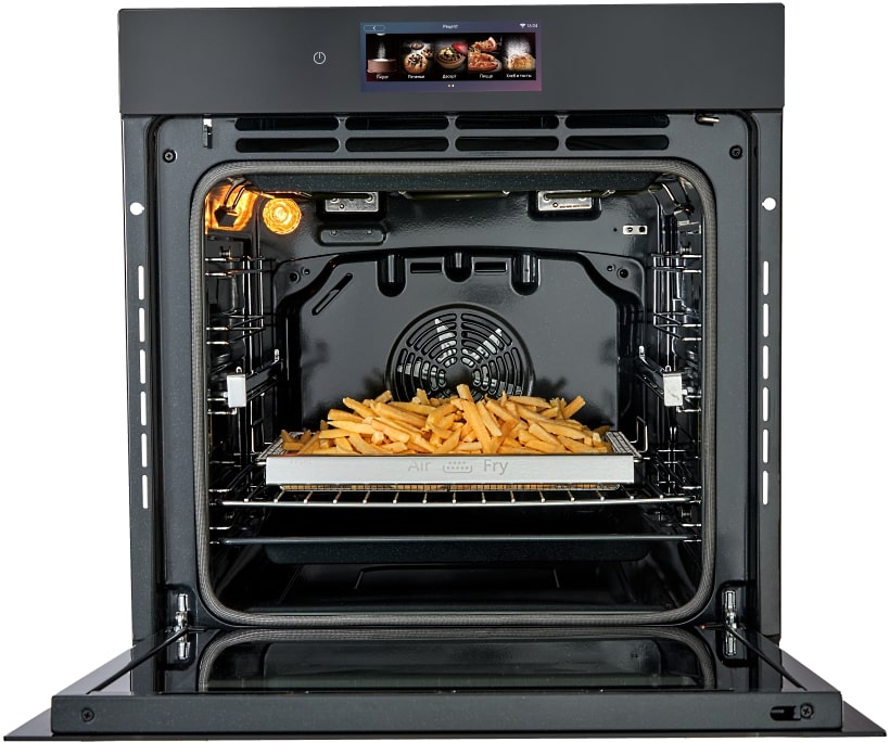 Духовой шкаф BMP 60.4 S оснащен пиролитической очисткой при температуре 480-500°C, превращающей жир в пепел, который легко удалить салфеткой. Автоматические программы Pro Cook помогают с рецептами. Управление осуществляется через TFT-дисплей 7". Противень AirFry обеспечивает максимальный доступ горячего воздуха для создания хрустящей корочки, делая блюда менее вредными, чем в классической фритюрнице.