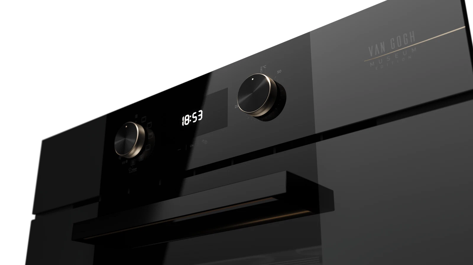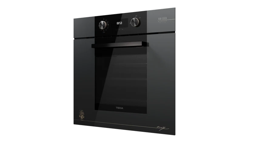 Вдохновленный творчеством великого художника, духовой шкаф HLB 84 P VG из эксклюзивной коллекции Van Gogh станет украшением любой кухни. Фасад из черного и темно-серого стекла без рамки с изысканной шелкографией – подписью Ван Гога и эскизом подсолнухов в цвете шампань – придает технике неповторимый художественный шарм.