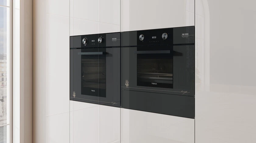 Этот мультифункциональный духовой шкаф сочетает в себе инновационные технологии и изысканный дизайн из специальной коллекции Van Gogh, созданной в сотрудничестве с музеем Ван Гога в Амстердаме. На фасаде из чёрного и тёмно-серого стекла без рамки красуется шелкография с подписью художника и эскизом подсолнухов в цвете шампань с искрой, а фиксированные регуляторы и ручка выполнены в комбинации металлов оттенков шампань и сверкающий чёрный.