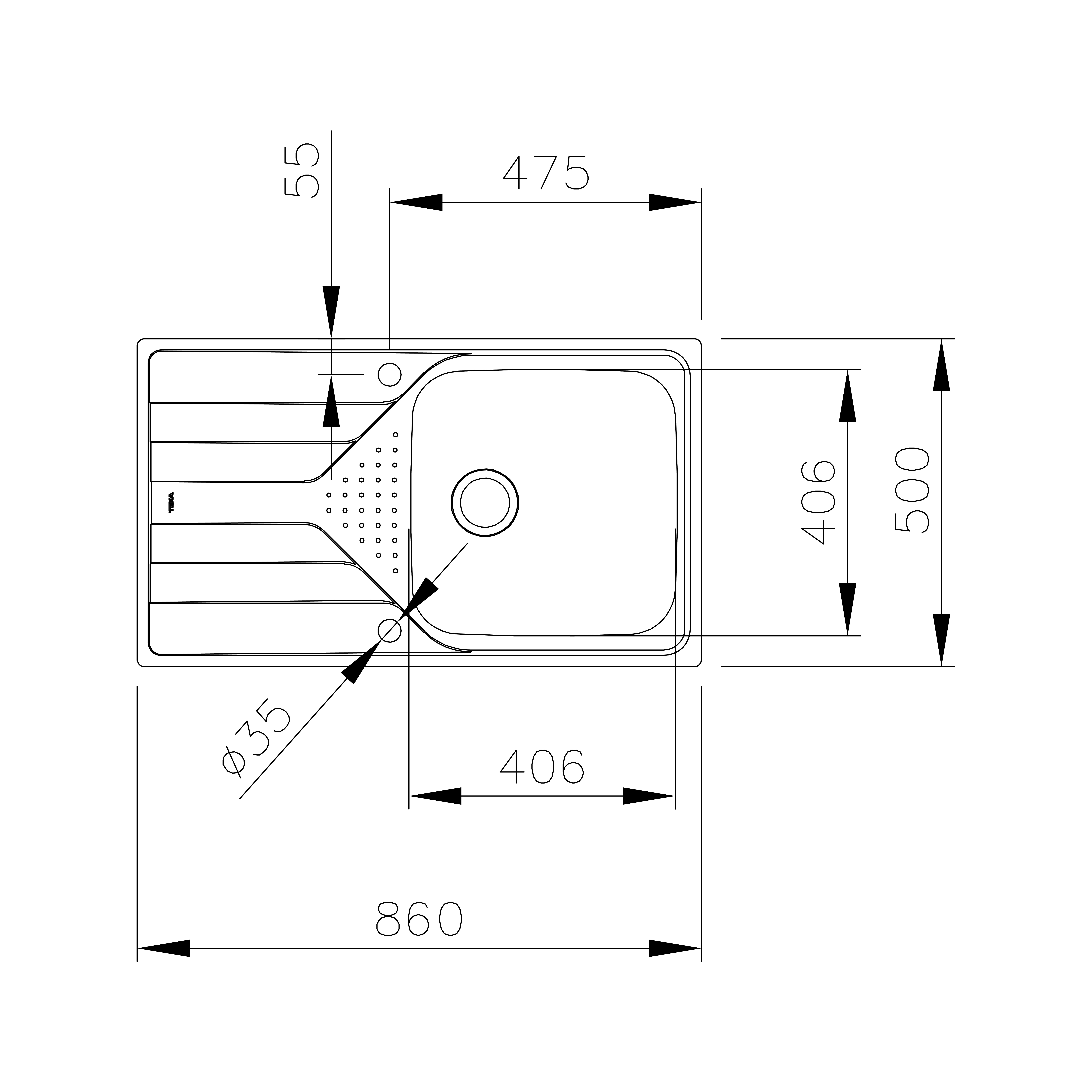 • Диаметр слива 3 1/2”, перелив