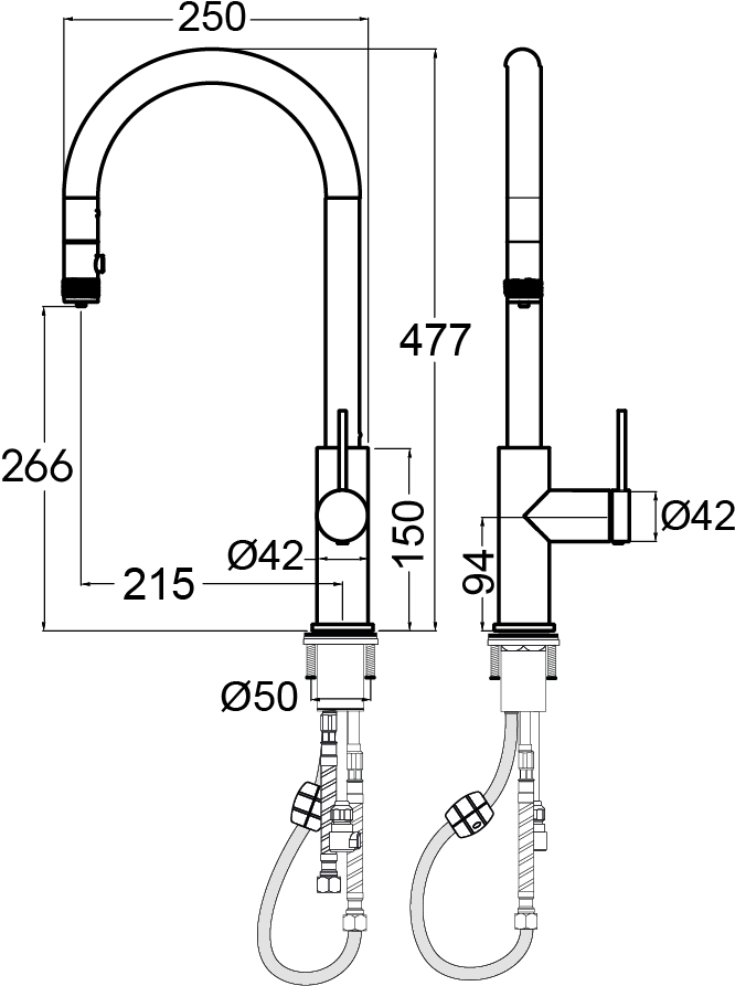 • Гибкая подводка для воды, 60 см. • Усиленный комплект креплений • Выход для подключения системы фильтрации воды • Переходник для подключения фильтра • Запасной аэратор