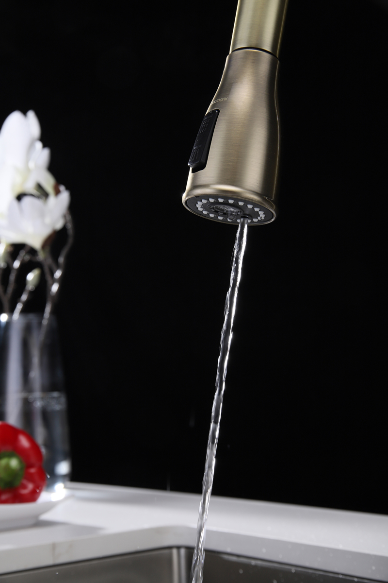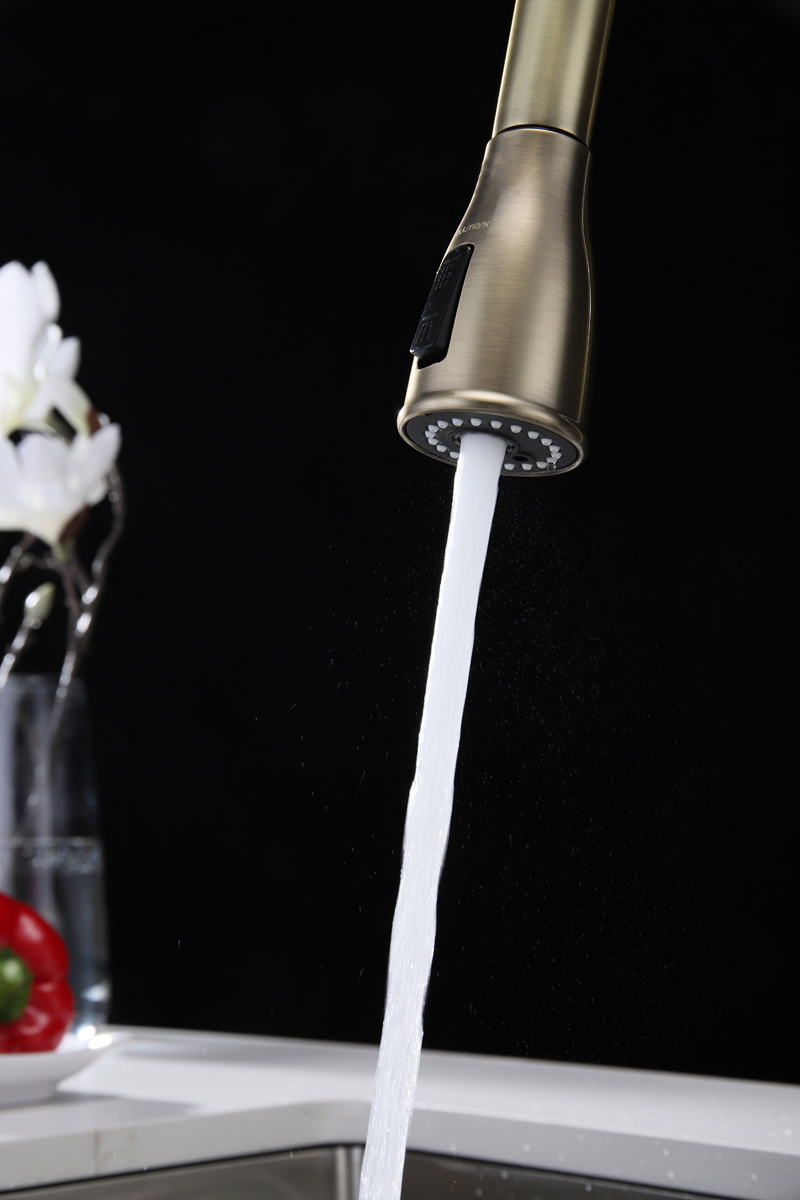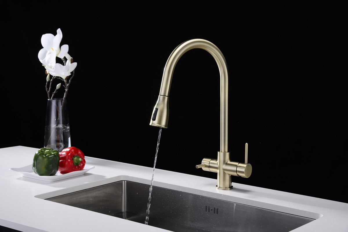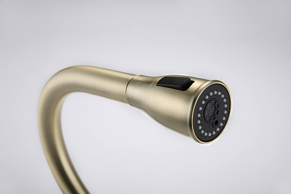 Смеситель LANGE оснащен функциями подключения фильтра питьевой воды, выдвижения излива и двумя режимами подачи водопроводной воды: струя и душ.