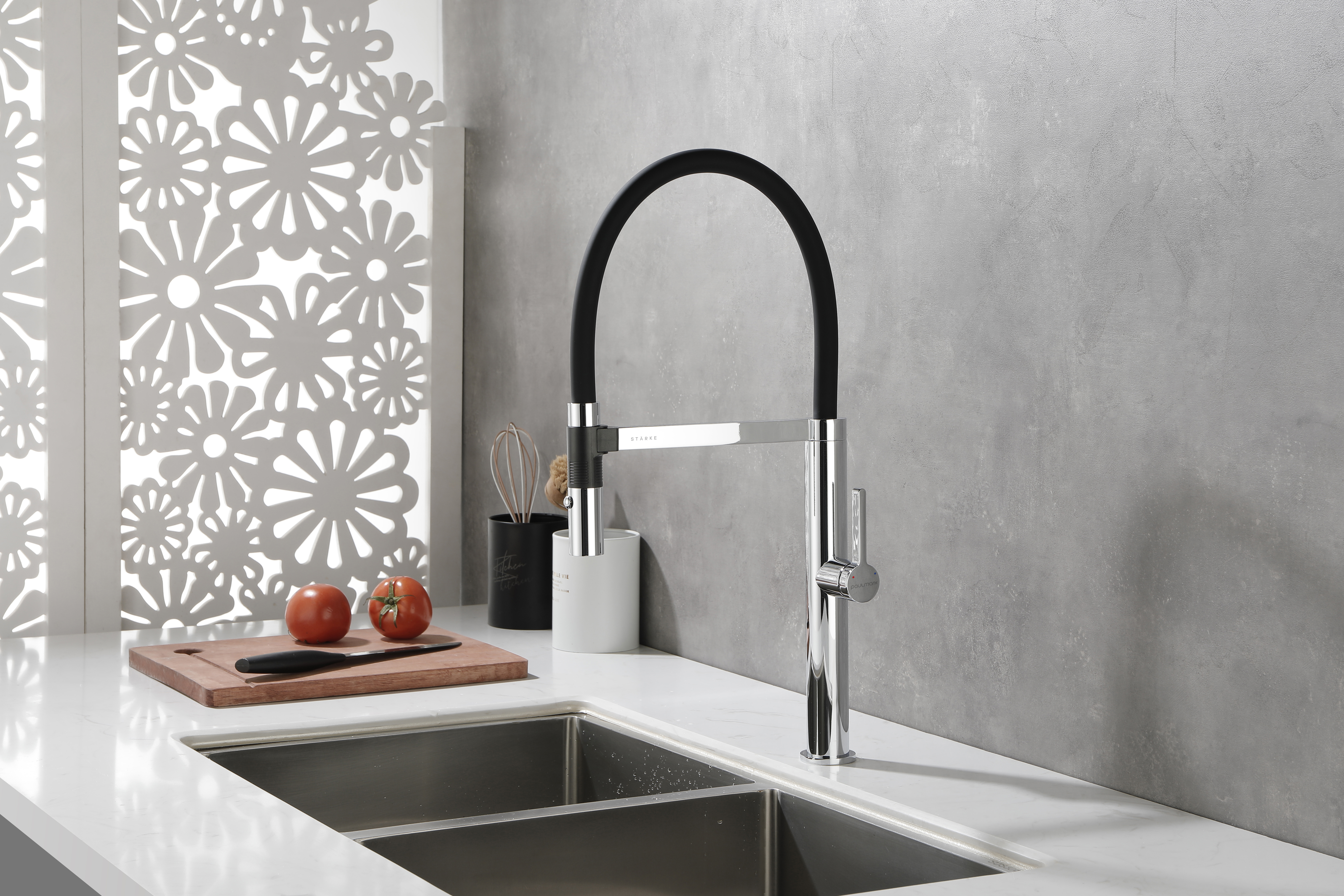 Высота излива делает смеситель идеальным решением для ваз и высокой посуды, а его необычный стиль позволяет воплотить самые смелые дизайнерские идеи на вашей кухне.