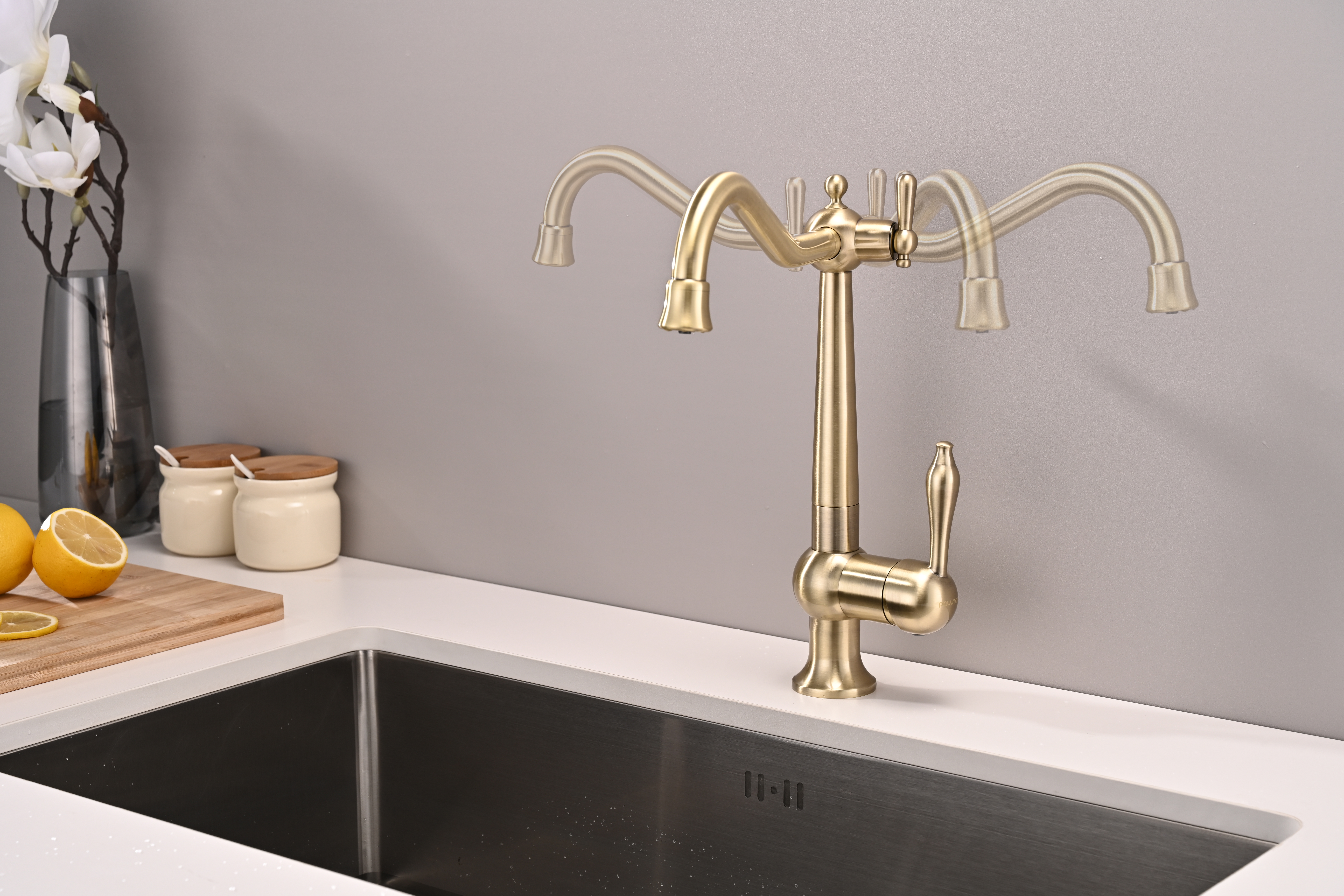 Смеситель для кухни RETRO изготовлен из высококачественной латуни, которая отвечает высочайшим европейским стандартам качества, не содержит свинца, не разрушается со временем и безопасна для здоровья.