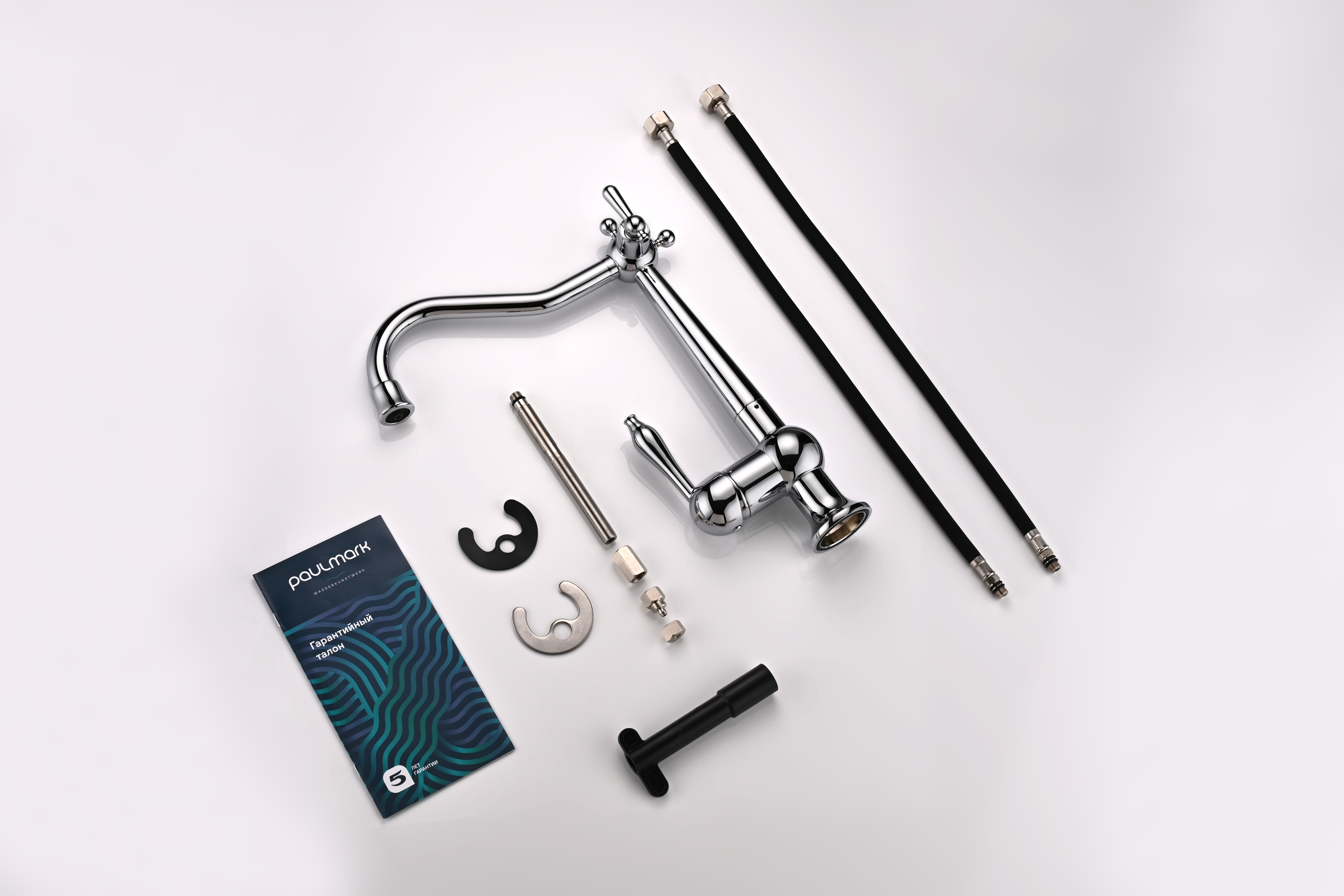 - Гибкая подводка из нержавеющей стали 40 см; - Усиленный комплект крепления; - Переходник цанга для подключения системы фильтрации питьевой воды; - Запасной аэратор.