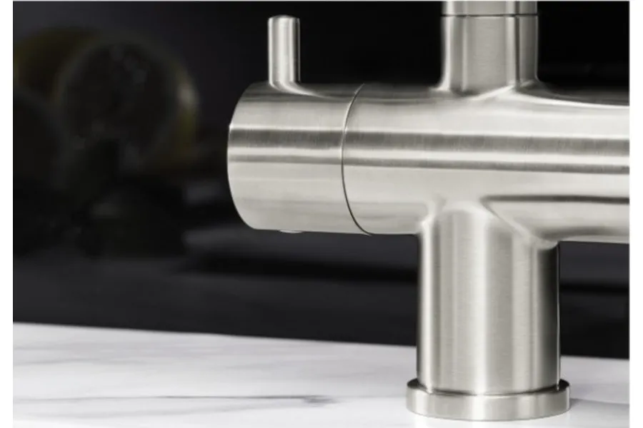 Смеситель с подключением фильтра FONTAS II PVD Steel 525138 от Blanco воплощает философию бескомпромиссного качества, инновационного дизайна и функциональности, превращая самое активное место на кухне в продуманный, эргономичный и эстетичный центр для приготовления пищи.
