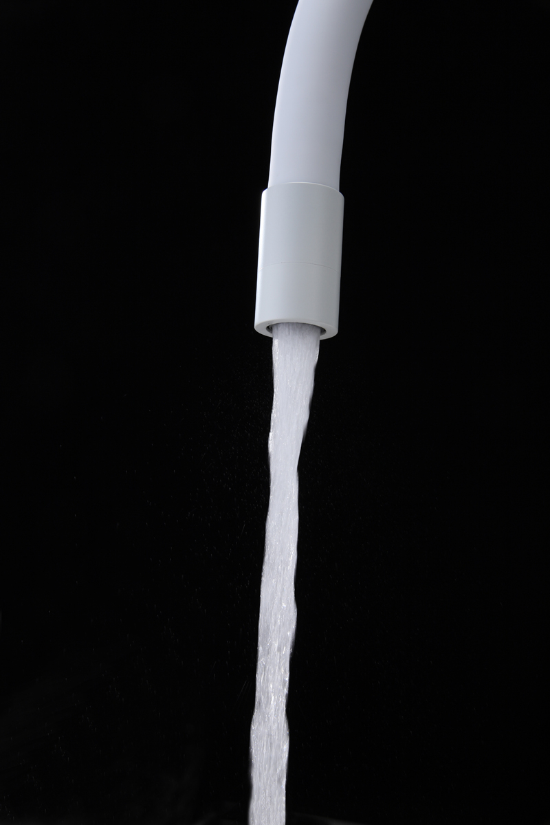 Высокий гибкий излив из силикона, вращающийся на 360 градусов, обеспечивает легкое мытьё и наполнение высокой посуды и ваз. Крепление излива с помощью магнитного держателя обеспечивает надёжную фиксацию.