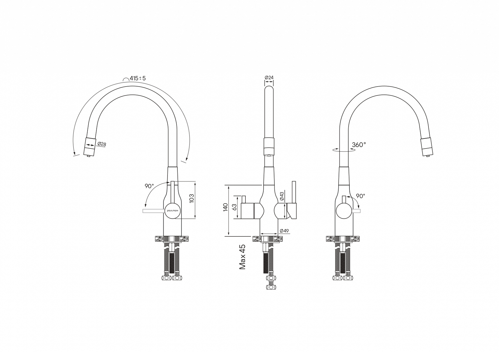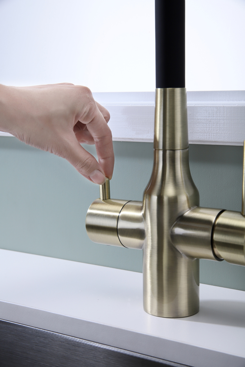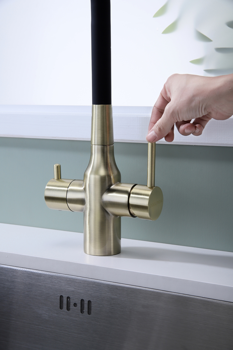 Смеситель для кухни SALIX c возможностью подключения системы фильтрации питьевой воды изготовлен из высококачественной латуни, которая отвечает высочайшим европейским стандартам качества, не содержит свинца, не разрушается со временем и безопасна для здоровья.