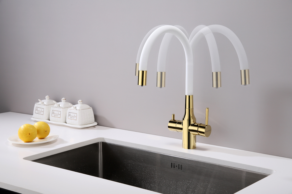 Смеситель для кухни SALIX c возможностью подключения системы фильтрации питьевой воды изготовлен из высококачественной латуни, которая отвечает высочайшим европейским стандартам качества, не содержит свинца, не разрушается со временем и безопасна для здоровья.