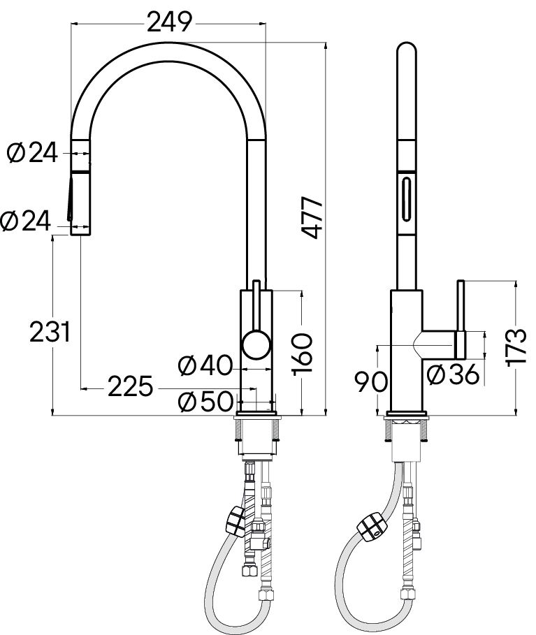 • Гибкая подводка для воды, 60 см. • Усиленный комплект креплений • Запасной аэратор