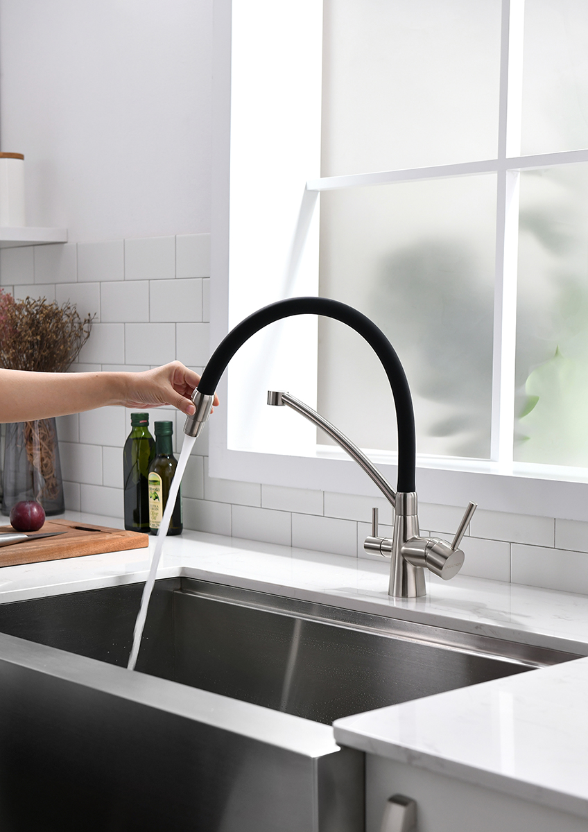 Смеситель для кухни с возможностью подключения фильтра SIEGEN изготовлен из высококачественной латуни, которая отвечает высочайшим европейским стандартам качества, не содержит свинца, не разрушается со временем и безопасна для здоровья.