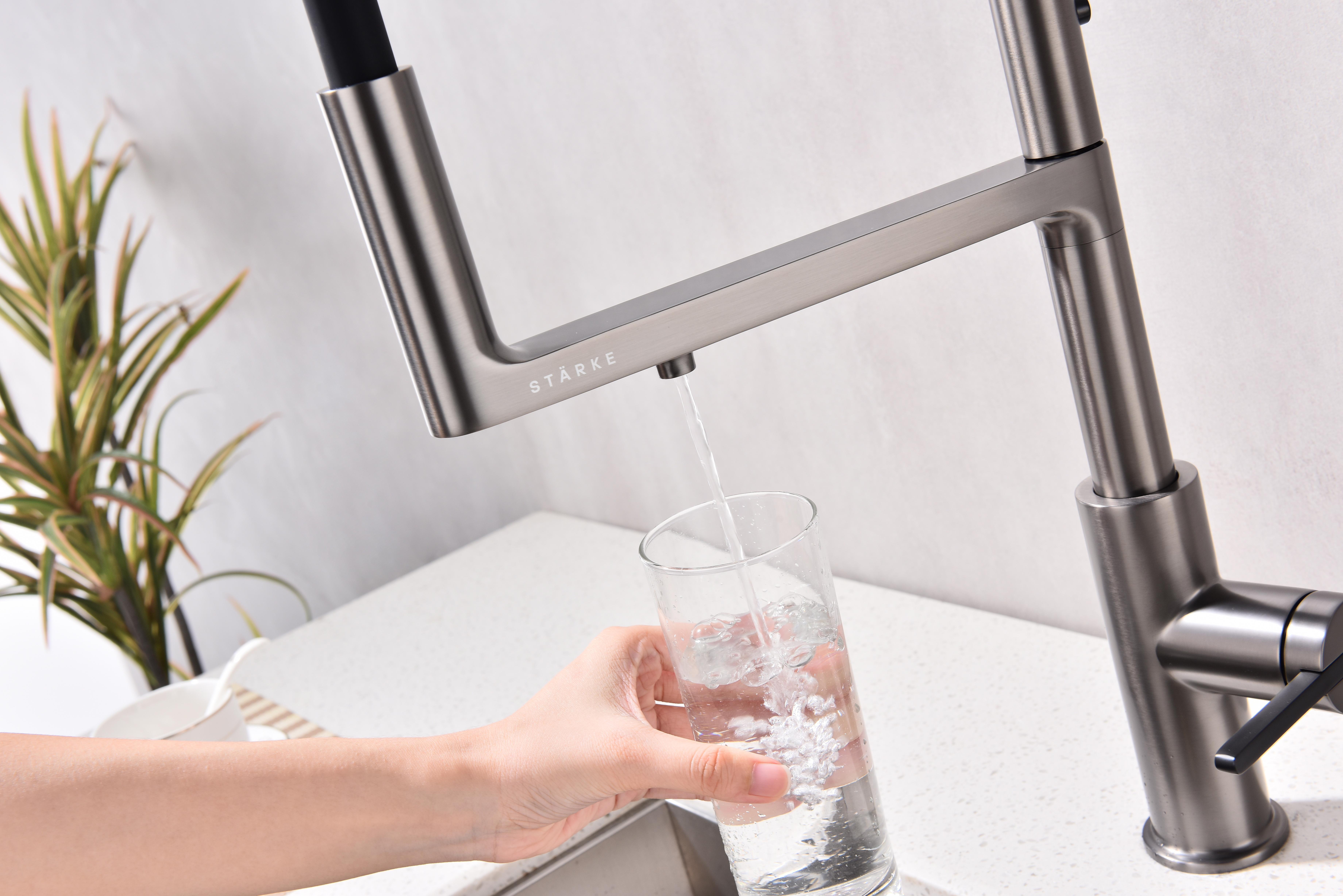 Многофункциональный смеситель для кухни TORNADO – модель премиальной серии «Starke» кухонной сантехники бренда Paulmark изготовлен из высококачественной латуни, которая отвечает высочайшим европейским стандартам качества, не содержит свинца, не разрушается со временем и безопасна для здоровья.